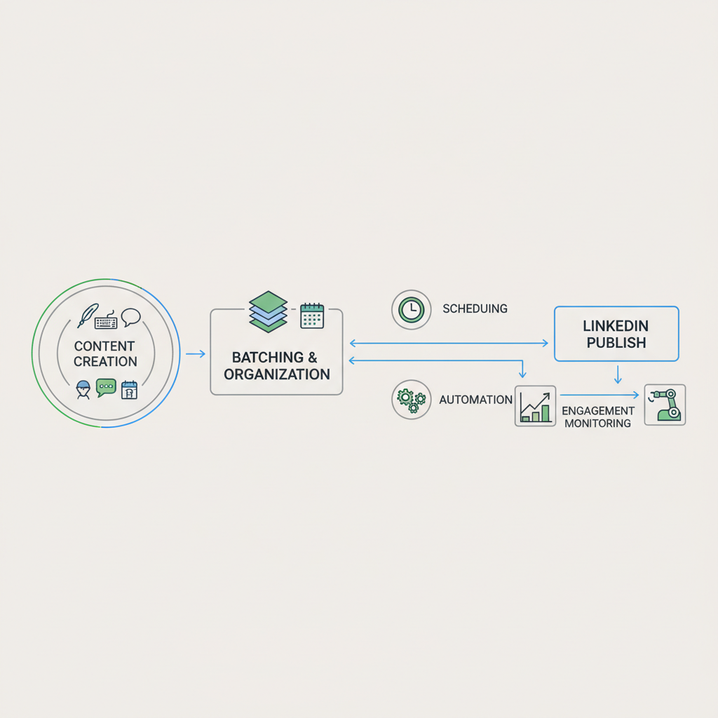 Learn how effective content batching, automation, and workflow systems can solve the real challenges of consistent LinkedIn posting for B2B founders, consultants, and solopreneurs in 2026.