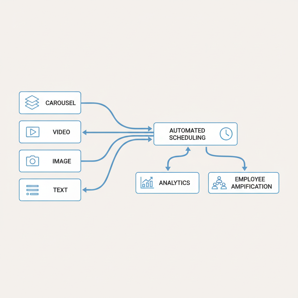 - Choose formats strategically: Prioritize carousels and videos for major announcements, case studies, or lead magnets. Mix in images for context and text-only for quick updates.